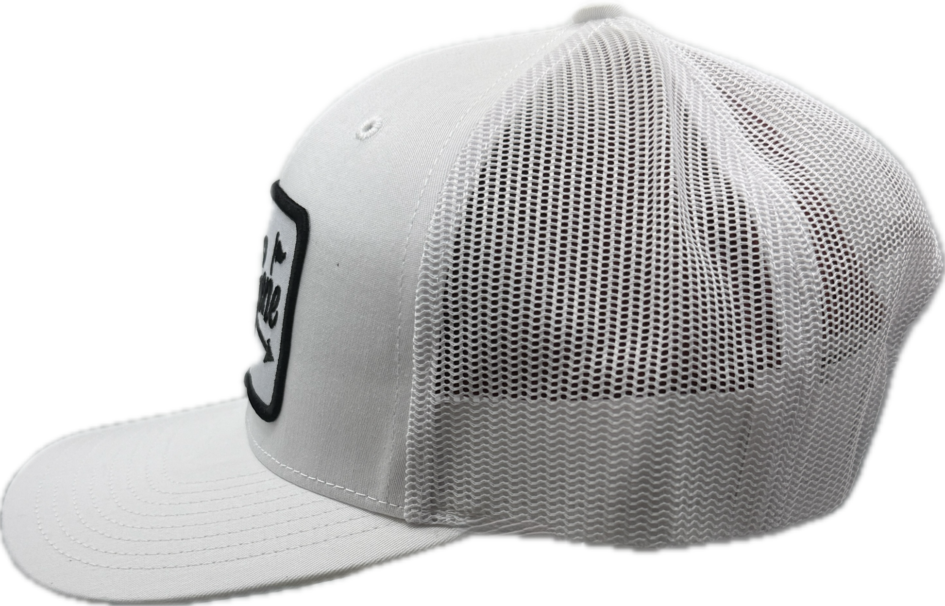 Classic contrast, timeless style. The She Gone White on White Trucker Hat features bold black embroidery on a white structured front panel, paired with a breathable mesh back and adjustable snapback closure. Comfortable, versatile, and sharp — this hat is ready for the course, the clubhouse, or anywhere the day takes you.